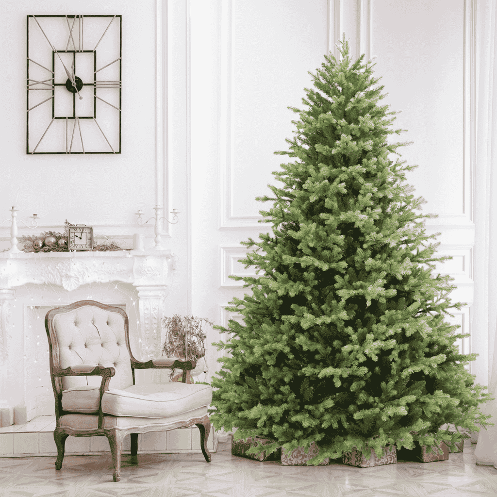 Make Christmas truly unforgettable with the 10ft Grand Aurora Artificial Christmas Tree from Puleo. Standing at an impressive height, this luxurious tree is designed for spacious rooms, hallways, or commercial displays. With 10,842 PE and PVC branch tips, it offers a remarkably lifelike appearance, full-bodied shape, and ample space for decorations.