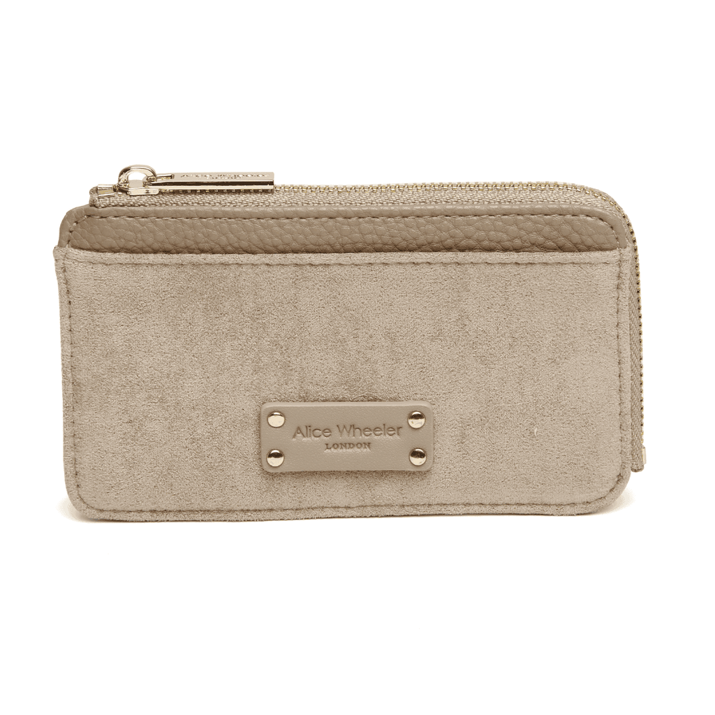 The purse features a secure zip-top closure, a dedicated coin compartment, and multiple card slots for easy organisation. Finished with a gold-toned zip and signature Alice Wheeler London branding, it pairs seamlessly with the Kensington Suedette bags for a coordinated and polished look.
