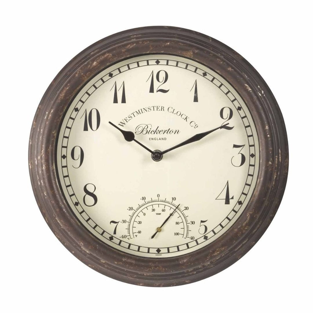 Bickerton 12 Inch Wall Clock with Thermometer – Indoor & Outdoor