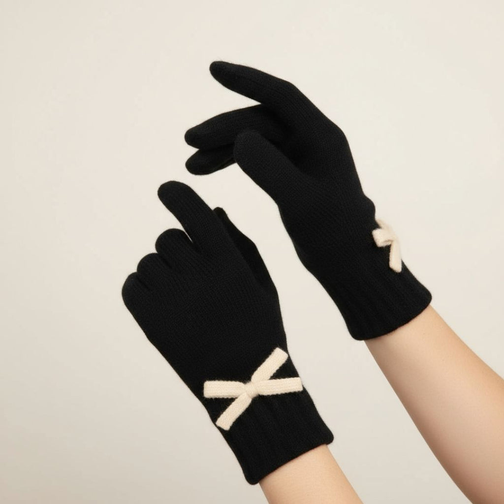 Stay warm through colder weather with these soft knitted black gloves featuring a contrasting cream bow detail. Designed for comfort and everyday wear, they offer a smooth feel and gentle stretch, making them ideal for winter outfits, commuting and weekend plans. The durable blend of chinlon, acrylic and viscose provides long-lasting softness, dependable warmth and reliable shape retention.