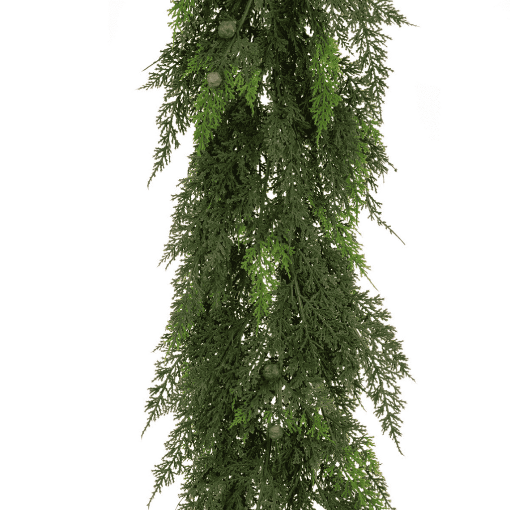 Bring natural festive charm into your home with the Christmas Cedar Garland 180cm from Floralsilk. Crafted with delicate fronds of lifelike faux cedar in beautiful multi-tonal shades of green, this realistic, artificial garland captures the fresh look of natural greenery without the upkeep.