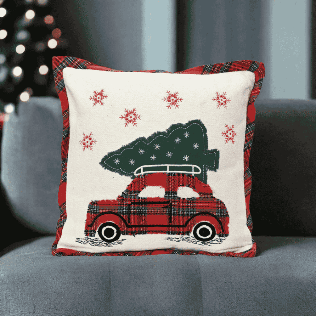 Add festive charm to your home with this beautifully designed Christmas cushion featuring a tartan car with a Christmas tree on the roof. With its natural background and traditional tartan trim, this cushion captures the joyful spirit of the season.