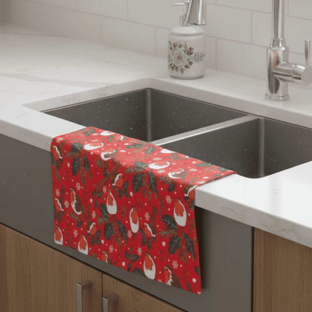 Featuring a charming design of robins and delicate winter foliage, it adds a timeless festive touch to your home. The vibrant detailing makes it an ideal accessory for your kitchen or a thoughtful seasonal gift for friends and family.