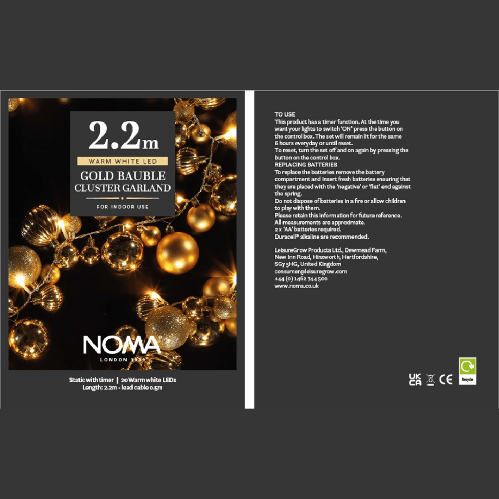 Bring warmth and sparkle to your festive décor with the Christmas Lights – Gold Bauble Cluster Garland. This elegant battery-operated garland features 20 warm white LEDs delicately intertwined with gold baubles, creating a radiant display perfect for mantlepieces, tables, or festive centrepieces.