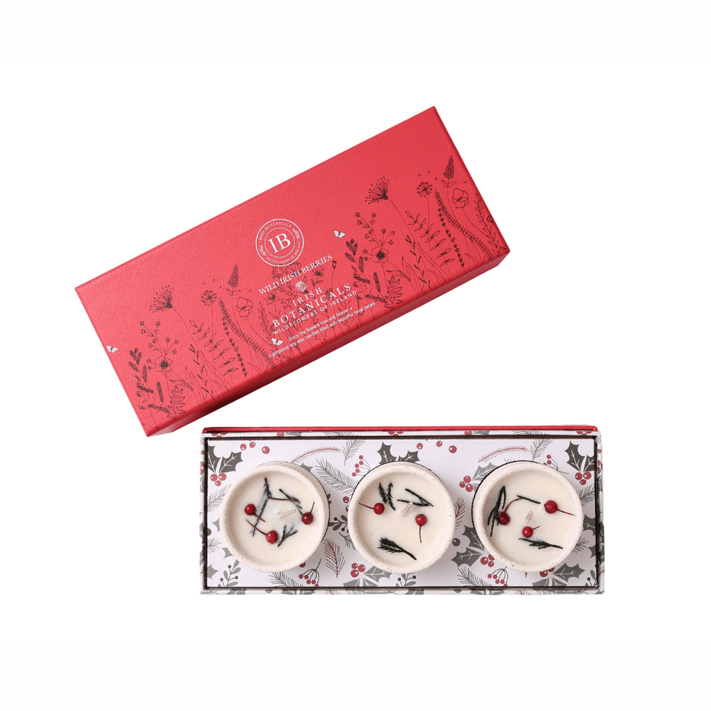 Fill your home with the comforting aroma of wild berries and forest botanicals with this Christmas Mini Candles Ceramic Trio from Irish Botanicals. Designed to capture the essence of the festive season, each candle offers a warm, inviting fragrance that evokes cosy evenings indoors after refreshing winter walks.