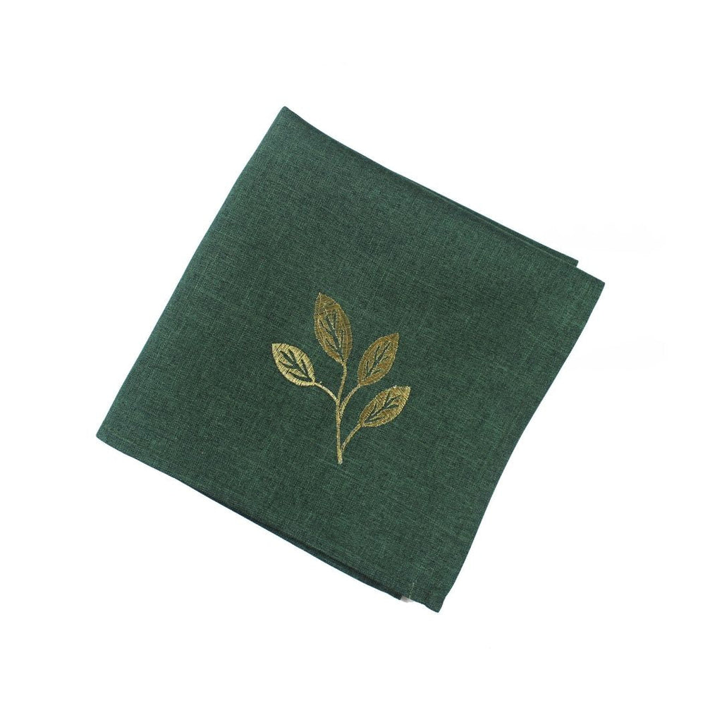 Bring the magic of the outdoors to your festive dining table with these beautiful napkins. The design features a sprig of gold foliage on a forest green background. This is the perfect addition to your Christmas table décor.