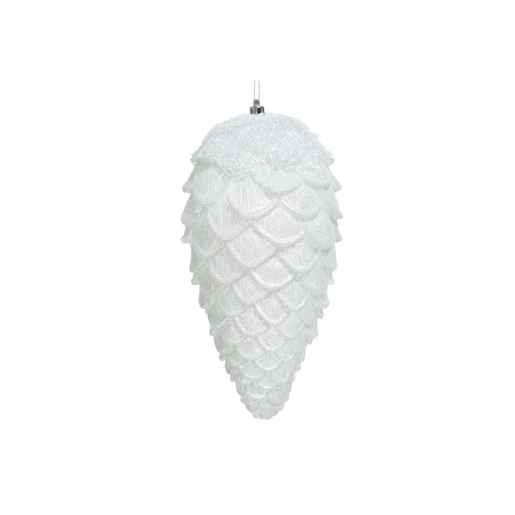 Add a sparkling touch to your festive décor with this Christmas Pine Cone in White Glitter. Its glitter finish captures the charm of the season while remaining durable and shatterproof, making it ideal for indoor decorating throughout the holidays.