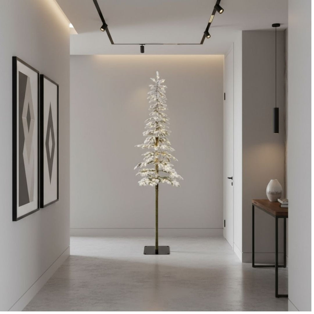 Bring the magic of a snowy forest into your home with the Pre-Lit Snowy Alpine Tree. Standing at 2.1 metres tall, this elegant artificial tree features a slim, space-saving profile—perfect for hallways, corners, or as a stylish focal point in your living room.