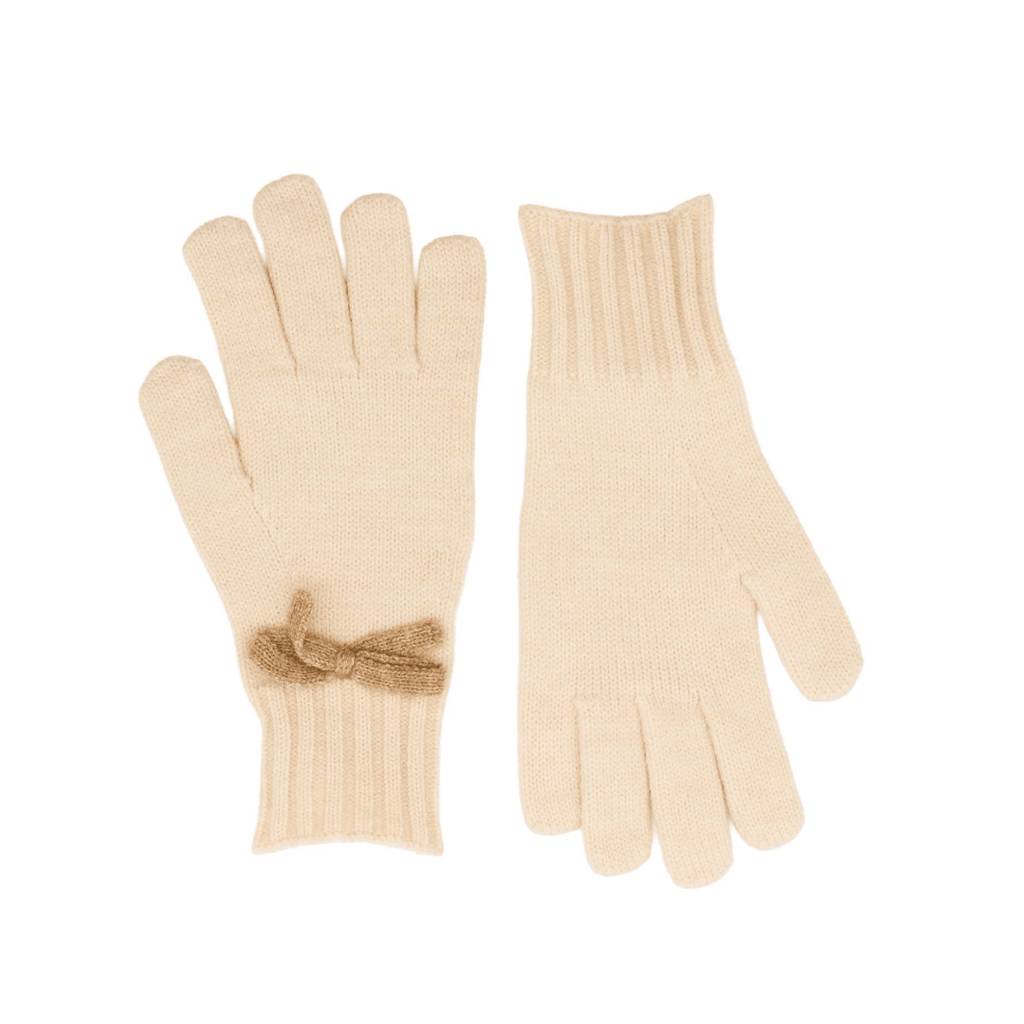 Soft knitted gloves with a contrasting bow detail