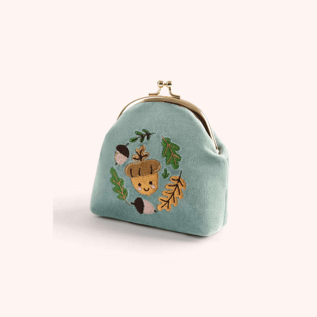 Add a touch of seasonal charm to your accessories with the Happy Acorn Velvet Coin Purse. Crafted in soft velvet with a secure metal clasp, this playful purse features a smiling acorn surrounded by leafy details – the perfect nod to autumn style.