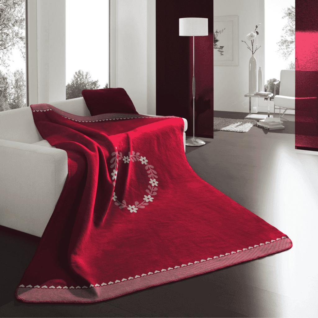 Bring warmth and timeless charm into your home with the Heart Warming Throw. Designed with intricate Edelweiss flowers and heart motifs, this cosy blanket blends traditional patterns with a modern touch in classic red and grey tones.