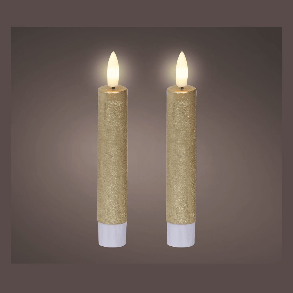 Create a warm, inviting atmosphere with these 14.5cm LED Dinner Candles in elegant gold. Designed with a realistic waving flame effect, they offer the charm of real candlelight without the mess or risk of open flames. Perfect for festive dining, cosy evenings, or stylish table décor throughout the season.
