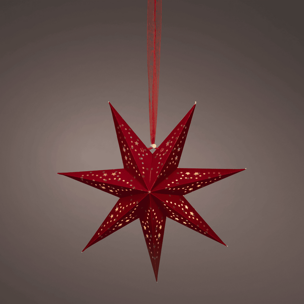 Create a magical festive display with this stunning red LED Christmas star. Designed in high-quality paper with a warm white glow, this illuminated star makes a striking focal point when hung in a window, on a mirror, or as part of your seasonal décor.