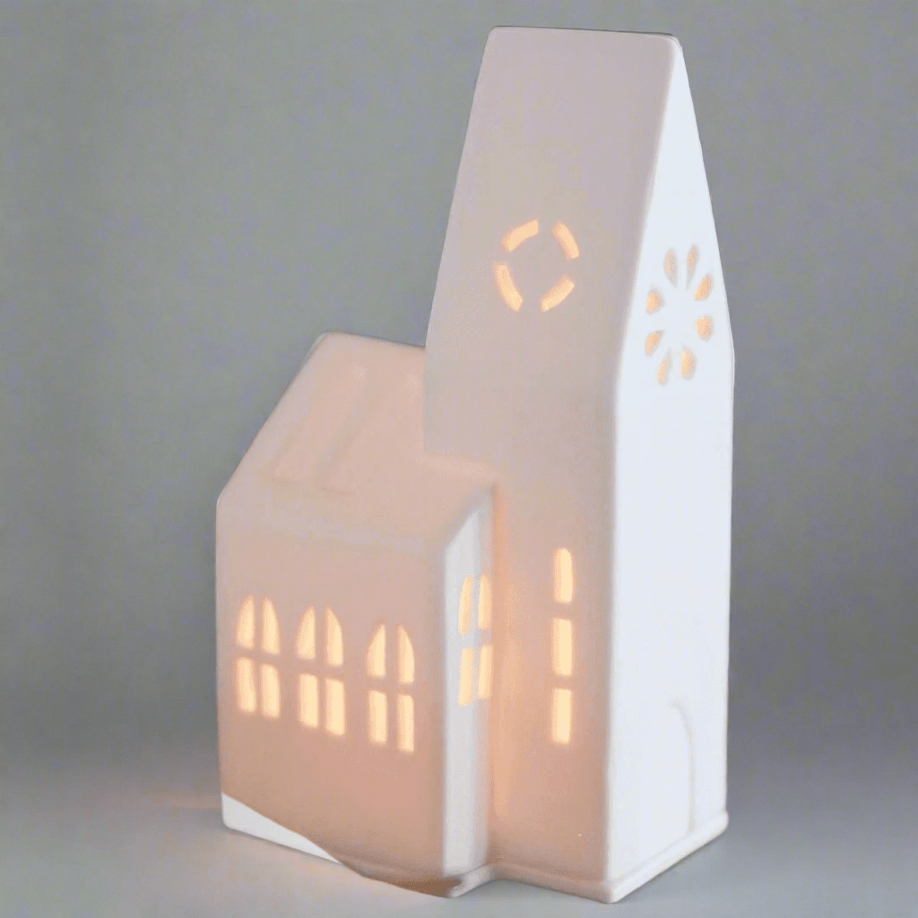 Create a peaceful and inviting atmosphere with the Räder Light House Church – Large, a beautifully handcrafted porcelain tealight holder designed to bring warmth and charm to your seasonal home décor. Inspired by the classic shape of a traditional church, this exquisite piece features multiple windows, including a distinctive circular spire window, allowing soft candlelight to gently radiate through.