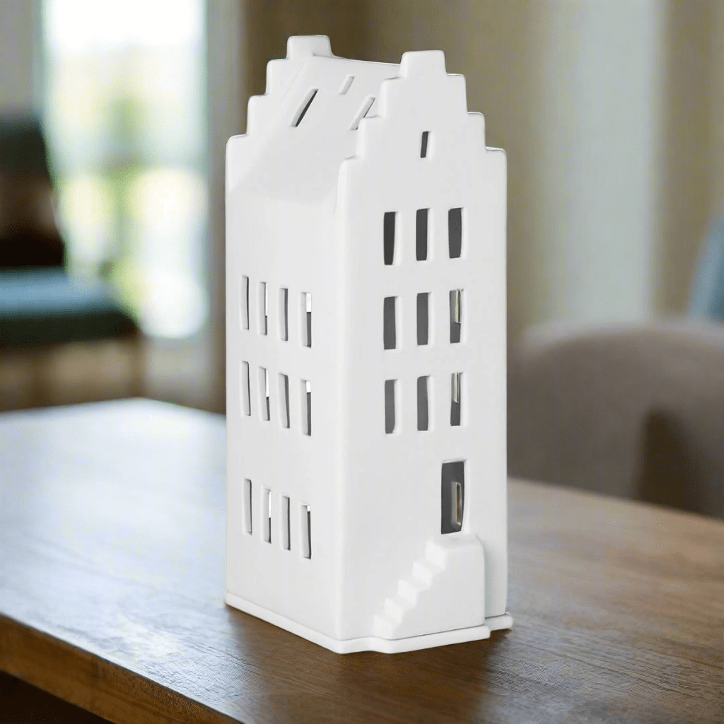 By day, this porcelain house adds charm to any setting; by night, it glows softly, bringing comfort and calm to your home.