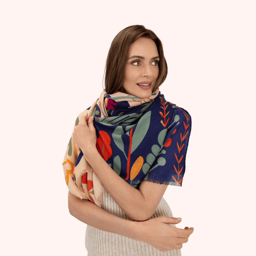 Bring Scandinavian-inspired charm to your wardrobe with the Scandi Two-Tone Floral Print Scarf. Designed in a striking blend of warm cream and rich navy tones, this versatile piece is perfect for adding a touch of sophistication to your winter style.
