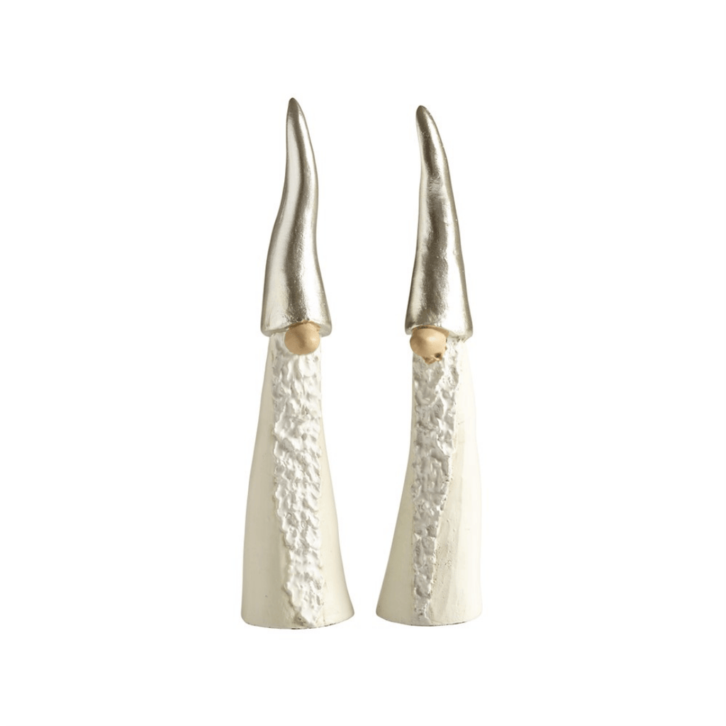 This delightful set features two Santas, each with a long beard and classic pointy hat. At 15cm in height, they are the perfect size for displaying on a mantelpiece, shelf, or festive table. Their understated design makes them versatile pieces that complement both traditional and contemporary Christmas interiors.