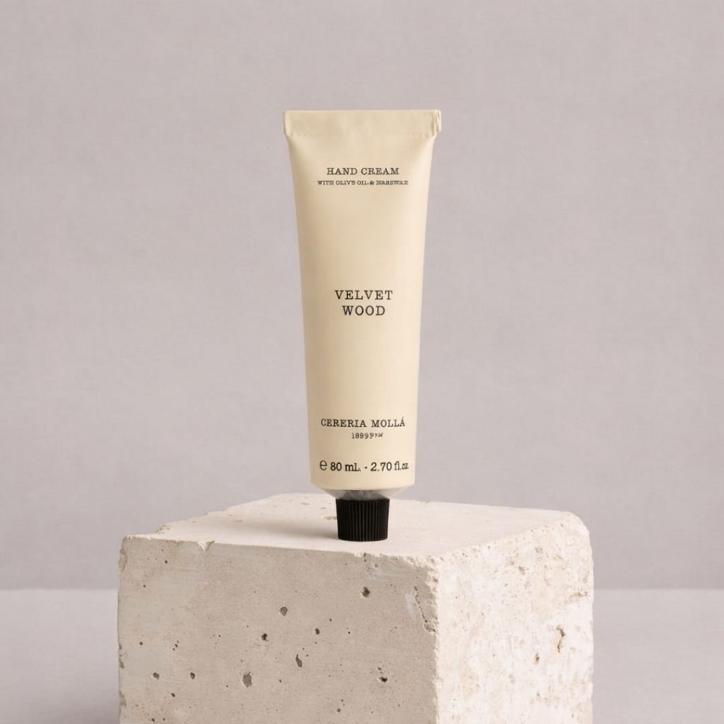 Care for your hands with the rich comfort of Velvet Wood Hand Cream by Cereria Mollá. Formulated with 93% naturally derived ingredients, this luxury hand cream is designed to nourish, protect and deeply hydrate while leaving hands soft, smooth and delicately fragranced.