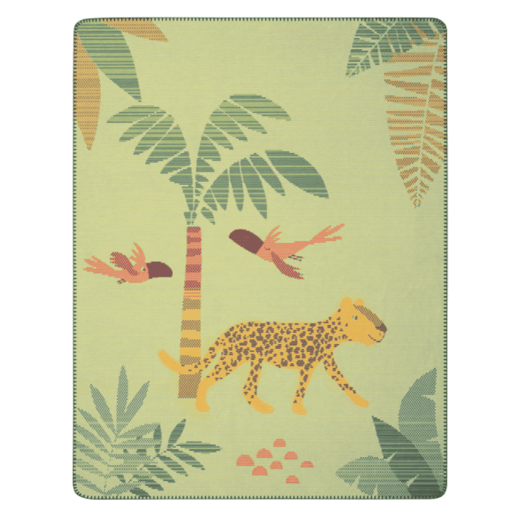 Bring a touch of the jungle into your child’s room with the Wildlife Baby Throw. Designed with playful palms, exotic birds, and a cheerful leopard, this blanket creates a fun and imaginative atmosphere for little explorers.