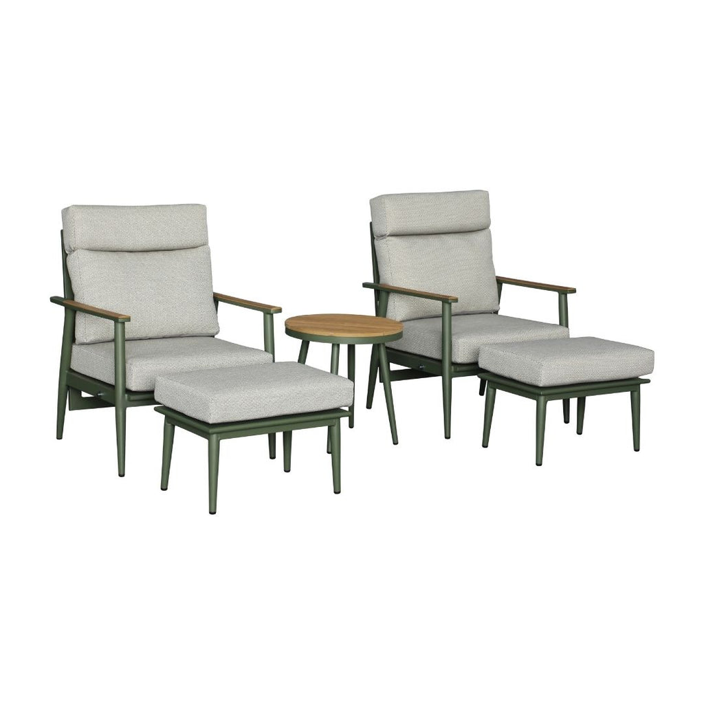 Relax in lasting comfort with the Wisley Reclining Sofa Chairs with Footstools and Round Coffee Table, a stylish and practical outdoor seating set in sage green, designed for modern gardens, patios, and terraces. Combining durable aluminium frames with deep, season-proof Eco cushions, this versatile set is ideal for lounging, entertaining, or unwinding outdoors.