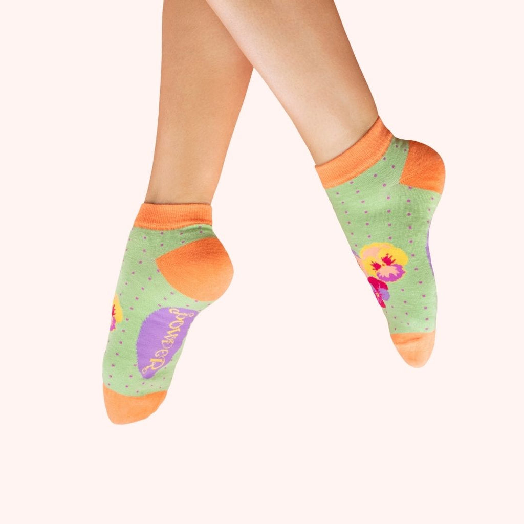 Description for Ladies Trainer Socks - Spring Pansies Mint